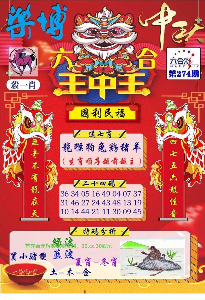 274期•前后两肖•【前肖+狗鸡】开狗44准 |